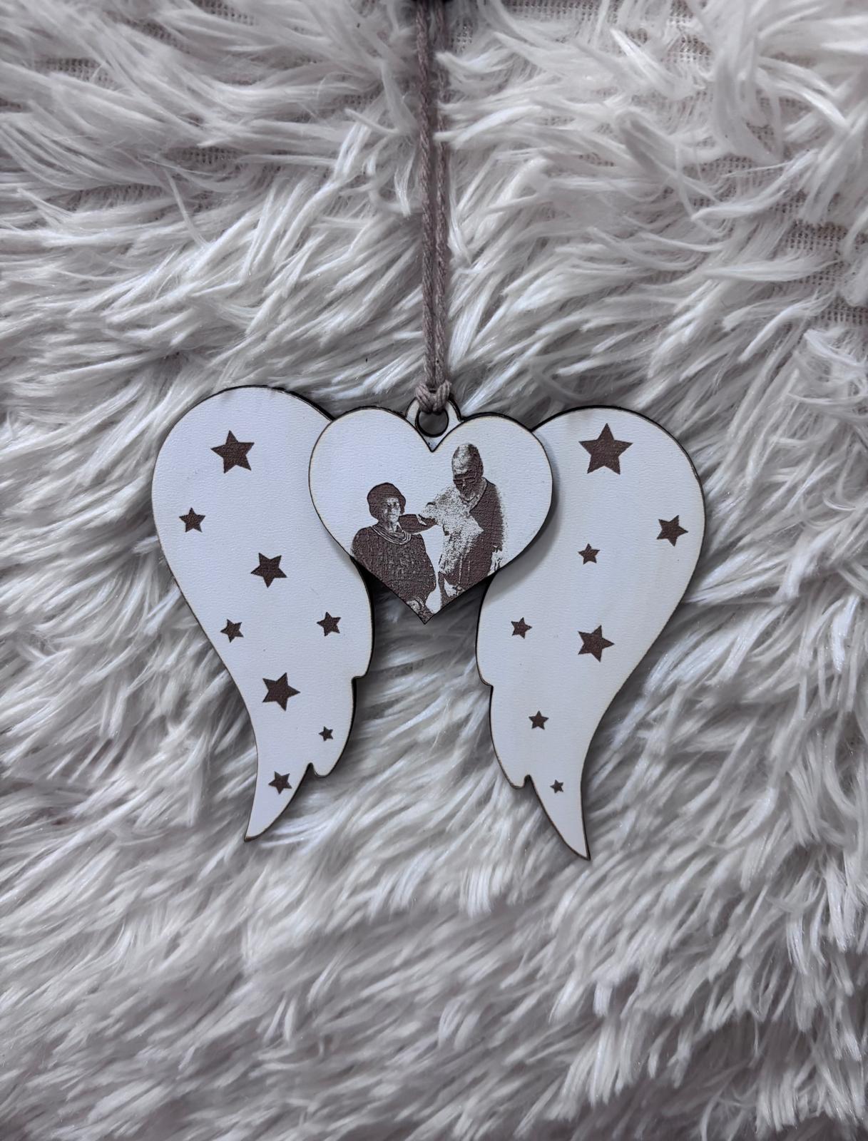 - Base de estrela personalizada ou asas: Feita de madeira, gravada com os nomes e/ou datas de nascimento e falecimento dos entes queridos.